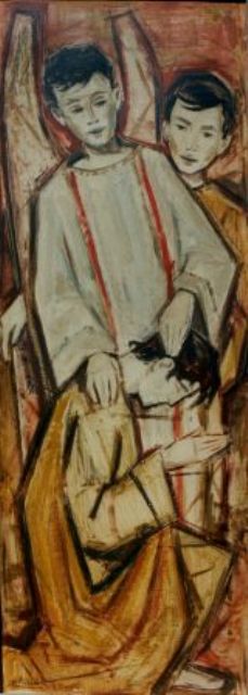 Àngels, 1959 – oli + pastel sobre paper 66 x 22